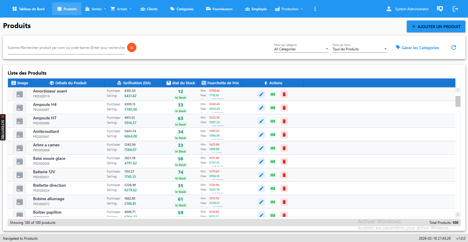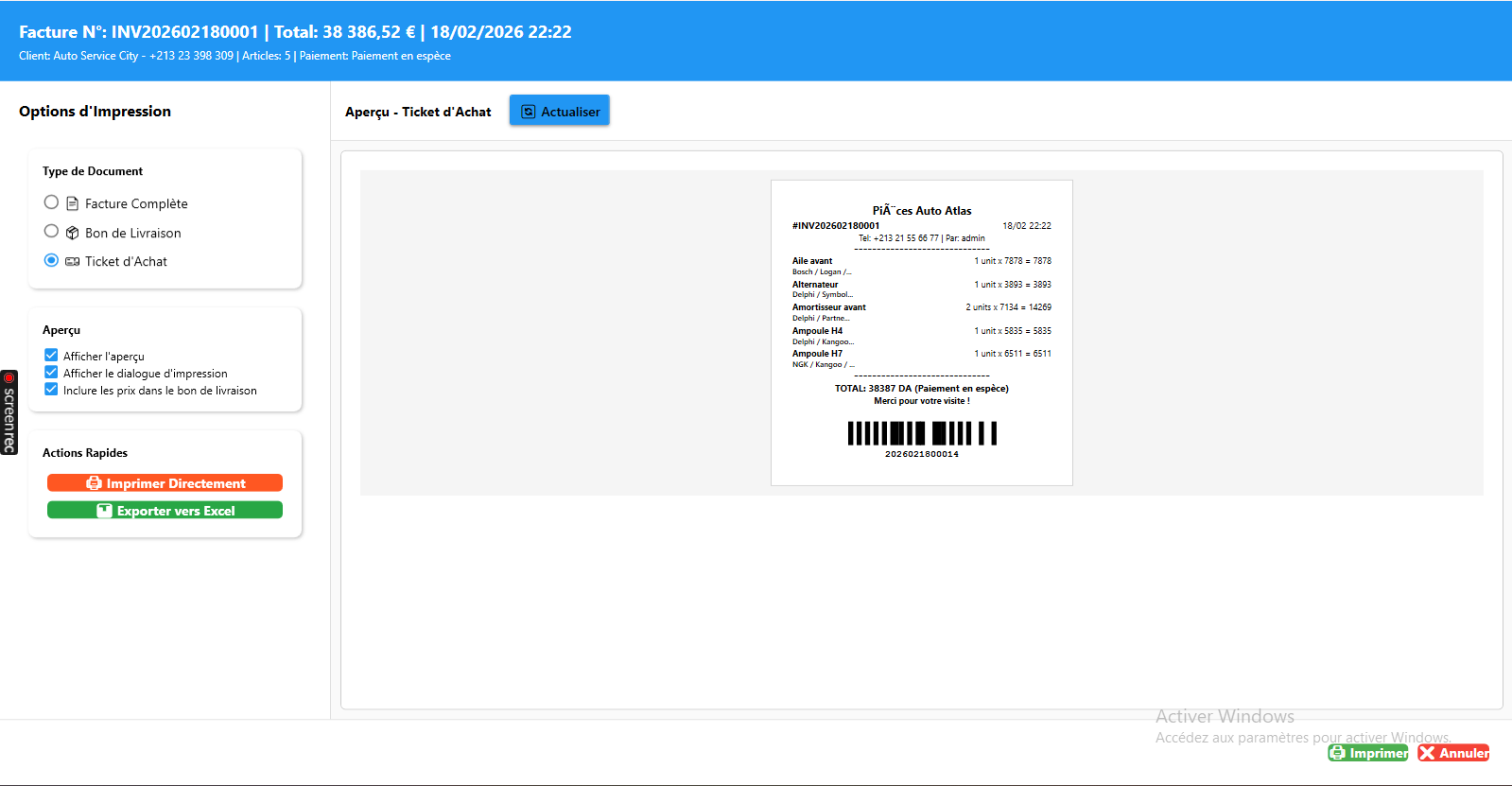 ميزات SOFTERA-DZ Inventory Pro: 1️⃣ تحكم كامل بالمخزون 📦 📊 لوحة تحكم فورية: المخزون، المبيعات، الأرباح، المنتجات القريبة من انتهاء الصلاحية ⚠️ تنبيهات ذكية عند انخفاض الكميات أو قرب انتهاء الصلاحية 🔄 تعديل المخزون: تسجيل التوالف، المرتجعات، والجرد الدوري 📍 تتبع تاريخي لمعرفة من قام بأي تعديل 2️⃣ نقطة بيع متطورة 🛒 ⚡ بيع سريع بالباركود أو اختيار المنتج على الشاشة 📦 نظام الباقة: بيع بالحبة أو بالكرتونة مع تحويل تلقائي 🎨 دعم المتغيرات: ألوان، مقاسات، موديلات لكل منها سعر ومخزون منفصل 💳 مدفوعات جزئية وتتبع رصيد العملاء 🧾 فواتير احترافية مطبوعة أو حرارية مع الباركود 3️⃣ المشتريات الذكية 🛍️ 📋 أوامر شراء وتتبع الاستلام 🔄 استلام جزئي للبضائع على دفعات 💰 متابعة المدفوعات: تعرف كم خلصت وكم باقي لكل مورد 📊 مقارنة عروض الأسعار لاختيار أفضل صفقة 4️⃣ إدارة العملاء والموردين 👥 📈 كشف حساب مفصل لكل عميل ومورد 💳 تحديد حد ائتماني لكل عميل 📜 بيانات جزائرية كاملة: NIF، RC، NIS، RIB، AI 📞 إدارة بيانات الاتصال، الملاحظات وأرقام الهواتف 5️⃣ عروض الأسعار الاحترافية 📄 📑 إنشاء عروض للعملاء وتحويلها لفواتير بضغطة زر 📨 إرسال طلبات عروض أسعار للموردين ومقارنة الردود ⏱️ تحديد تاريخ انتهاء صلاحية كل عرض 6️⃣ نظام الإنتاج المتكامل 🏭 📝 إنشاء قائمة المواد (BOM) لكل منتج 🔢 حساب تكلفة دقيقة: المواد + الأجور + المصاريف 📊 متابعة استهلاك المواد والإنتاج الفعلي 🗑️ تسجيل الفاقد والخردة والمنتجات المعيبة 7️⃣ إدارة الموظفين والرواتب 👷 ⏰ تسجيل الحضور والانصراف وساعات العمل 💵 احتساب الرواتب أوتوماتيكياً مع الإضافي والخصومات 📑 طباعة كشوف الرواتب لكل موظف 📊 تقارير إنتاجية الموظفين وتكلفة العمالة 8️⃣ الصلاحيات والأمان المتقدم 🔐 👤 صلاحيات مخصصة لكل مستخدم 🔍 سجل تدقيق كامل لمعرفة من أضاف أو عدل أو ألغى أي عملية 💾 نسخ احتياطي لحماية البيانات 9️⃣ تقارير شاملة لاتخاذ القرار 📊 💹 أرباح وخسائر بدقة 📦 حركة المخزون: أكثر المنتجات مبيعاً والأقل حركة 👥 تقارير العملاء: أفضل العملاء وأكثرهم مديونية 🏭 تقارير الإنتاج: الكفاءة والتكاليف والإنتاجية 💵 تقارير الرواتب: إجمالي الأجور والتكاليف متوافق مع النظام الجزائري 🇩🇿 NIF • RC • NIS • RIB • AI • TVA • Droit de Timbre مميزات إضافية حصرية: 🌐 يعمل بدون إنترنت على جهازك 💾 نسخ احتياطي تلقائي 🔄 تحديثات مجانية مستمرة